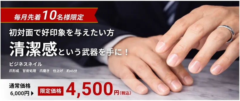 | 「清潔感の高い人」「指先まで気を遣える人」として、初対面で好感度をあげられます。 |