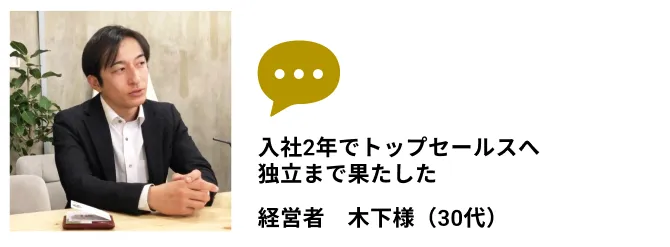 飛び込み営業がメインで、1年目は全然ダメでした。ですが、ここへ通い出したのを機に、身なりや立ち回りをキチンとするようになったら、2〜3年目にトップセールスになれました。